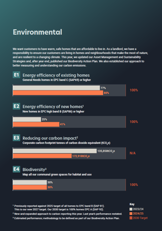 - 80% of our general needs homes are in EPC band C (SAP69) or higher